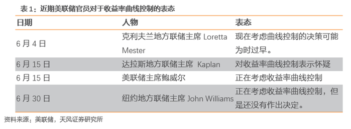 在7月1日公布的美联储会议纪要中,联储官员讨论了三种收益率曲线控制政策,分别是