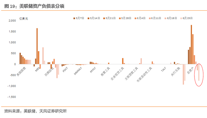 近期美联储资产负债表收缩,但收缩的主要是回购、美元互换等短期的流动性投放,对于美债的购买保持每周200亿美元的速度,因而对美债,特别是长端影响并不大。