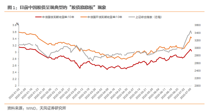 近期不断走强的股市情绪持续压制债券表现,同样是流动性的结构性外溢,为什么美股屡创新高,美债却持续在0.7%附近低位徘徊,而国内债券市场会出现如此剧烈的调整?