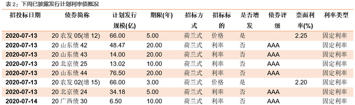 根据已公布的利率债招投标计划,下周将发行30支利率债,共计2487.3497亿。其中地方债有24支,合计755.35亿。