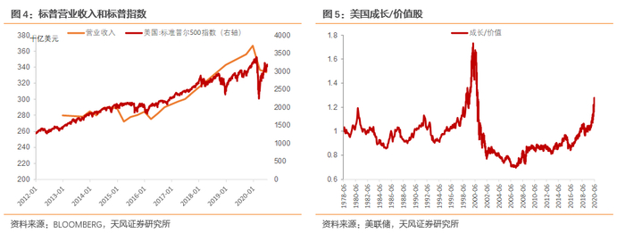 落脚到企业营收上,和2019年Q4相比,2020年Q2标普500企业营收下降了9.05%,但指数却超过年初水平,说明当前美股不是基本面的简单结果。