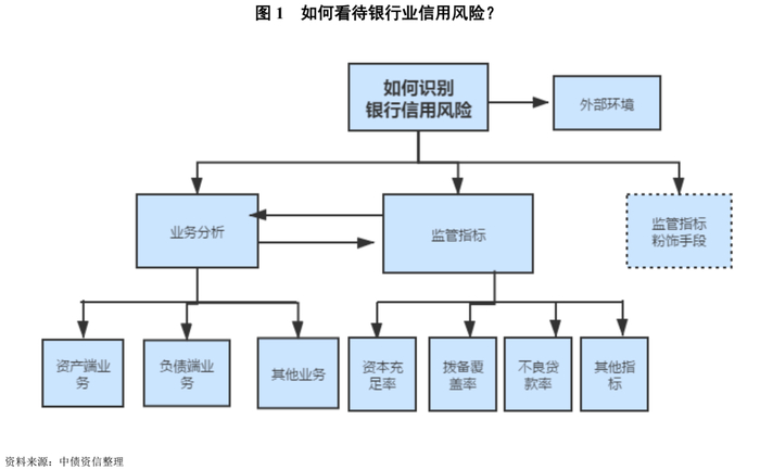 在我国的金融行业格局中,银行一直以来在金融系统中占据主要地位。不同于工商企业,作为金融机构,银行的经营受到严格的监管。2018年以来,央行和银保监会在政策方面持续发力,集中出台多项调控政策,防范化解金融风险,引导以银行为代表的金融业加大服务实体经济。2019年,银行业信用风险事件陆续出现,个别银行被接管或者引入战投;2020年以来,经济下行叠加疫情冲击影响,实体经济的信用风险进一步向银行业传导,银行不良资产面临上升压力。银行尤其是中小银行的信用风备受市场关注。合抱之木,生于毫末;九层之台,起于垒土。中债资信将围绕如何识别银行业信用风险开展系列专题研究。力求通过对银行的各项业务以及核心监管指标进行深入分析,识别银行报表或监管指标可能存在的“水分”,还原银行真实经营情况,最终呈现完整的银行业信用风险分析图谱。