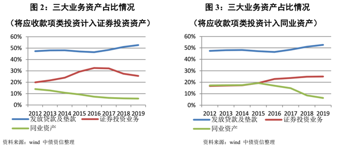 根据上述研究体系,中债资信将首先对银行资产端业务展开分析。银行资产端业务主要包括信贷业务、证券投资业务、同业投资业务等。其中,信贷资产是银行资产的基石,证券投资业务和同业业务是银行流动性管理的重要工具。