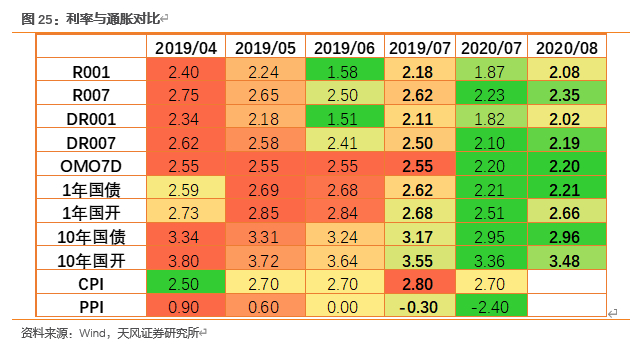 对比2019年7月前后的利率水平(黄金利率水平),如果年内经济增长回不到潜在增速,根据测算年内CPI、PPI都明显低于去年,那么利率水平可能不会再出现明显抬升,短端利率可能会维持震荡状态。