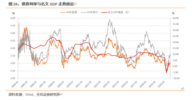 这意味着,这一时期产出缺口和通胀缺口均接近于零,实际利率可能接近均衡利率水平。那么,我们可以以这一时期的利率水平作为一个标尺,来对未来货币政策和利率走势的判断做一个逻辑参考。