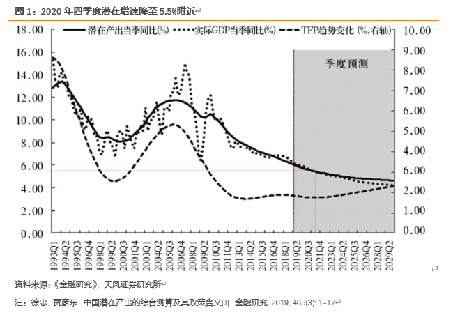 潜在增速对应的是潜在产出,疫情前央行测算的2020年中国潜在增速在5.5%附近,疫情冲击下潜在增速可能也会下降。