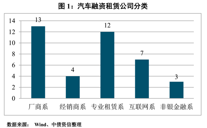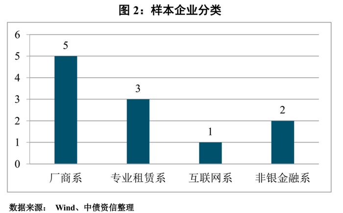 本篇中,中债资信首先对汽车融资租赁业务和融资租赁行业进行了定义,明确了本文分析的企业主体为从事汽车融资租赁业务的融资租赁公司。同时将汽车融资租赁公司按照股东背景划分为五类,分别为厂商系、经销商系、专业租赁系、互联网系和非银金融系;