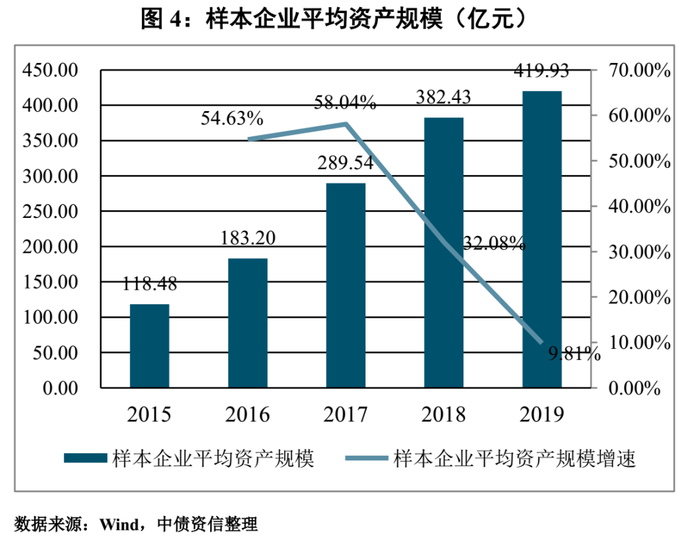 根据《汽车融资租赁行业发展蓝皮书》,汽车融资租赁行业一直保持平稳增长,2017年市场规模为1735亿元,2018年市场规模为2255亿元,增幅达到30%。另一方面,中债资信统计了11家样本企业的资产规模,发现自2015年后,11家样本企业的资产逐年均呈现不同程度上升,平均增长率最低接近10%,最高可达到58%。