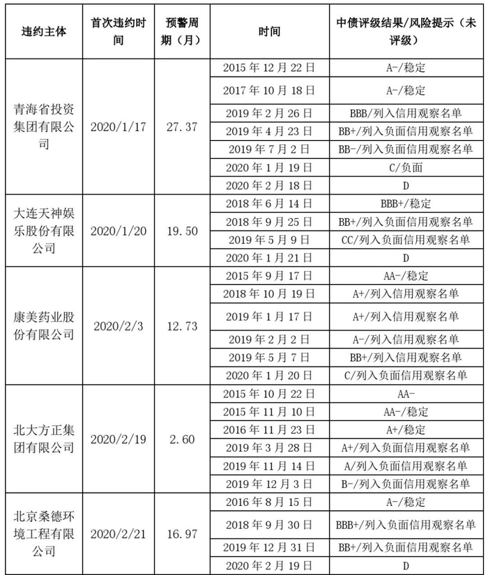 表1:2020年违约中债资信覆盖公募债发行主体违约路径