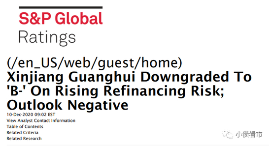 标普认为,广汇集团缺乏长期融资渠道,将加大再融资风险;预计其将以短期银行融资为2021年到期的大部分债券进行再融资。