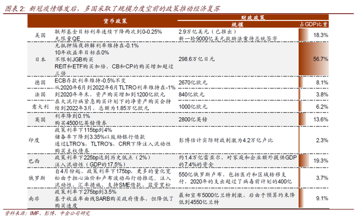 鉴于新冠疫情及相关封锁措施对经济造成的巨大冲击,多国均出台大规模的刺激政策对经济进行托底并推动经济复苏,力度空前。