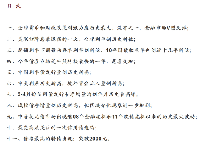 电影台词常说,猜对了开头,没有猜对结局。对于2020年的经济和中国债市而言,恐怕猜对开头和结局都不容易,甚至连中间的剧情都是超预期的。但这就是市场的魅力,下注的时候永远不知道结局是惊还是喜。2020年注定是刻骨难忘的一年,不仅大家因为疫情练得一手好厨艺,更重要的是大家见识到了中国人团结、坚强、高效、有序的一面,在疫情防控方面完胜其他国家,并引领经济率先恢复。对于债券投资者而言,今年利率行情的波动以及信用债违约的惊雷,让大家真正领略风险控制和回撤控制的重要性。所幸的是,今年固收+大放异彩,失之东隅,收之桑榆。如果说记录是用来打破的,历史是用来改写的,那么2020年其实创造了很多历史之最,将载入史册。为此,我们就来回顾下2020年这些金融市场尤其是中国债市的历史之最,好用于未来给我们的儿孙们讲故事。