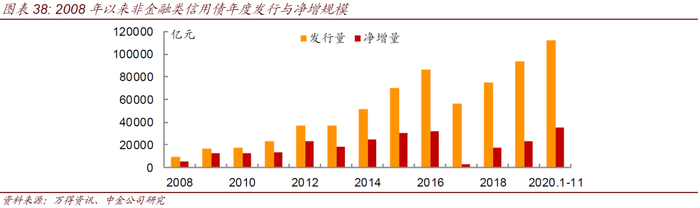 1)不考虑12月的话2020年全年信用债总净增规模也已达到历史最高峰水平