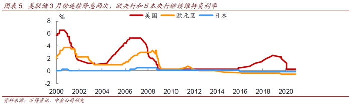 十二年前,为应对2008年金融危机,全球多国选择大幅降低政策利率并实施量化宽松来拉动经济走出危机泥潭,不过也因此使得多国央行的货币政策空间有限,特别是降息空间有限。但新冠疫情爆发后,无论是持续加码宽松的日本央行,还是此前通过加息挽回了一定政策空间的美联储,均选择再次实施宽松力度更甚金融危机时期的货币政策,以托底经济并维护金融市场稳定,全球货币环境达到了空前宽松的程度。