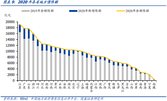 各省新增地方债限额由财政部下发。2017年财政部发布的《财政部发文规范新增地方政府债务限额分配管理》(财预[2017]35号)规定“各省、自治区、直辖市、计划单列市新增限额由财政部在全国人大或其常委会批准的地方政府债务规模内测算,报国务院批准后下达地方”,简单来讲即财政部基于一定的核算将全国地方债新增限额(包括一般债和专项债)分配到各省,再由省非分配到市,依次逐级下达。