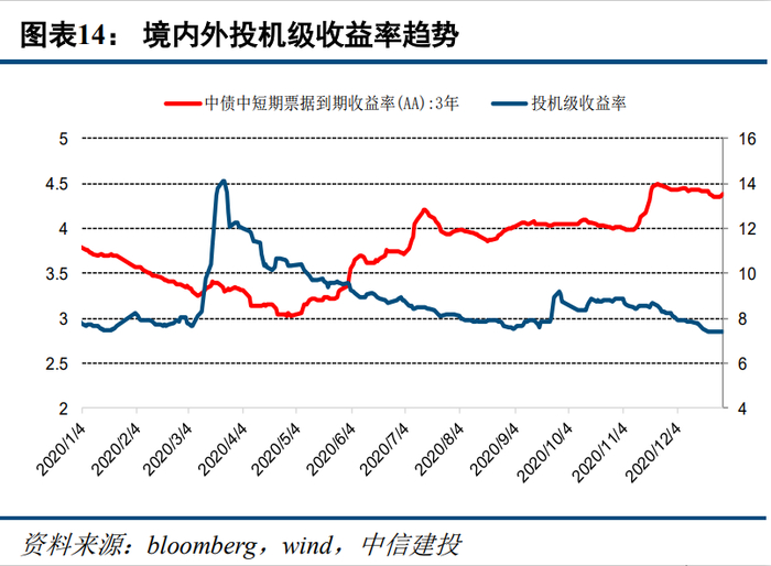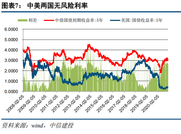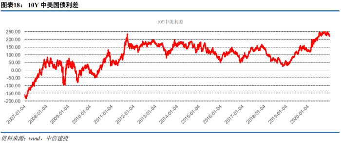 2021年流动性宽松加码的概率较低,而边际趋紧的节奏可能快于市场预期。从主观态度和行为上看,美联储近期持续释放中性信号,客观必要性上配合宽松的需求也在趋弱。根据中信建投宏观海外的预测,美十债利率有可能上行至1.3-1.7%区间,中美利差有望收窄。