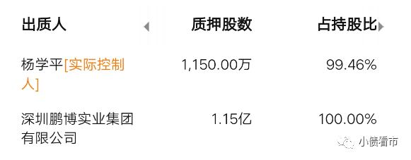 截至2020年7月,鹏博士的实控人杨学平所持公司股权的质押率为99.46%;控股股东鹏博实业质押率为100%,可以看出股票质押率非常高,不仅存在爆仓风险,还存在实控人变更风险。