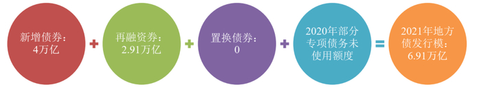 2021年地方政府债券发行共包含两个部分:新增债券、再融资债券,此外,不排除部分省市动用2020年未使用的专项债务限额的可能。