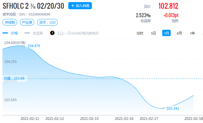 受此影响,2月11日以来,顺丰控股发行的境外美元债“SFHOLC 2 7/8 02/20/30”和“SFHOLC 4 1/8 07/26/23”在二级市场均出现小幅下跌。