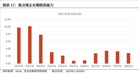偿债能力方面,从长期偿债能力来看,2016年后,伴随着煤企盈利能力的增强,EBIT对利息保障倍数逐年递增,2018年年中行业平均保障倍数为3.51。受疫情影响,2020年此指标回落,截至2020年年中,EBIT对利息保障倍数下降至2.87。