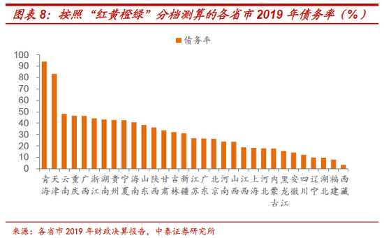 需要特别强调的是,参考过往地方政府债务风险评估和预警办法的思路,区域分档对象应该为省本级、市(州)本级、县(市、区)级政府,而非全省、全市口径,因此债务余额、财力等数据需要按照本级口径进行调整。基于2019年各地区财政决算报告,我们测算了31个省本级、333个地级市本级的债务率数据,供投资者参考。