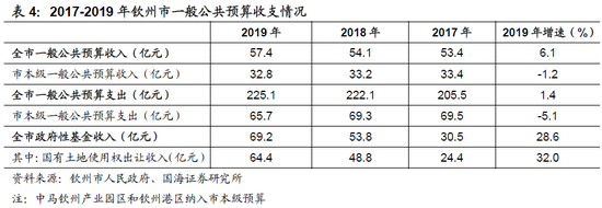 伴随着产业结构的持续优化,钦州市财政实力提升速度也有所加快。钦州市2019年实现一般公共预算收入57.4亿元,在自治区内位居第9,相对处于中游水平。从增速上来看,2019年钦州市一般公共预算收入同比增长6.1%,增速较2018年提升4.7个百分点。