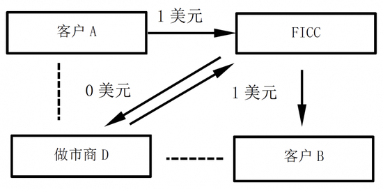 三方回购由中央托管机构作为第三方管理质押物,回购双方仅确定金额、价格和期限。质押物主要是国债、住房抵押贷款支持证券(Agency MBS)等一般担保品(General collateral,GC),因此也称为GC回购。三方回购可细分为传统三方(Traditional tri-party)回购和GCF回购。传统三方回购由纽约梅隆银行担任三方托管机构,其交易量在回购市场中占比最大。GCF回购由固定收益清算公司(FICC)担任第三方托管机构和中央对手方负责净额清算。1998年,FICC为了提高其会员(主要是债券做市商)回购交易的效率,引入了GCF回购(如图2)。该模式下,由经纪商(Interdealer broker,例如ICAP)撮合做市商达成交易,交易双方匿名并统一面对FICC清算,FICC作为中央对手方降低交易对手风险的前提下,还可以提供净额清算,在日内进一步降低资金和质押物的占用。该模式已成为主流债券做市商之间互相调节资金的重要渠道。