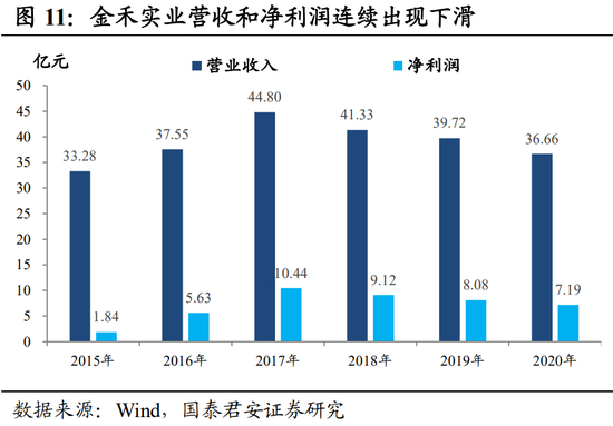 虽然金禾实业在两大代糖上掌握着产能优势和成本优势,由于行业整体产能的释放,传导至下游产品价格下降,所以金禾近几年的营收和盈利持续下降。