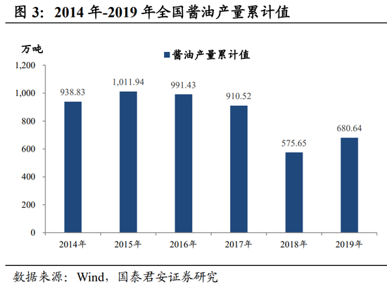 酱油,是市场规模最大的单一调味料,渗透率在99%以上。近年来酱油累计产量在不断下滑,但是高端酱油的市场规模仍在不断扩大,“健康”在这个时代很容易占据消费者心智。