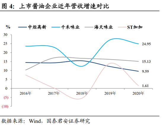 行业龙头海天味业的增长仍稳定地高于整体市场,而千禾味业通过“零添加”、“有机”走出了小而美的高成长。