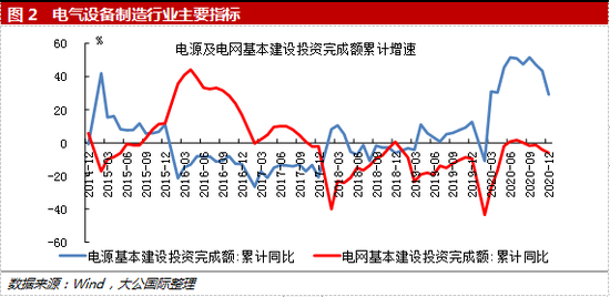 2020年电网投资规模同比有所回升,“新基建”概念相关领域受益,政策推动风电及光伏发电逐步平价上网,全球性碳排放目标将使新能源电气设备制造企业赢来新的机遇,景气度回升
