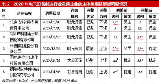2020年电气设备制造企业信用质量维持稳定,企业间信用等级有所分化,调级企业数量同比有所下降。在政策不变情况下,预计2021年电气设备制造企业信用水平仍将保持稳定。