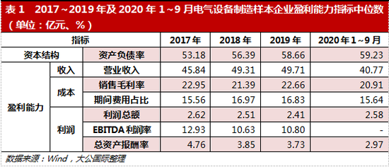 我们以信用债wind行业中的工业资本货物-电气设备为样本,筛选出数据完整的75家发债企业作为样本,提取各指标中位数进行比较分析。