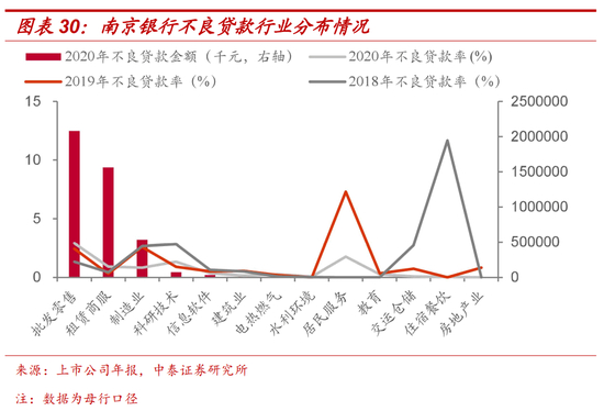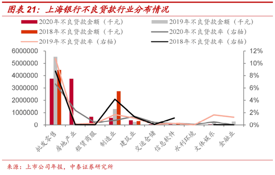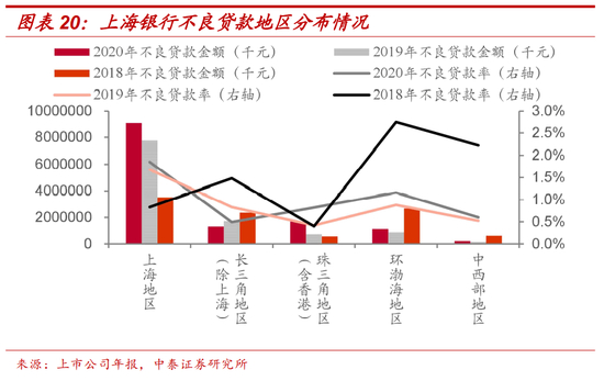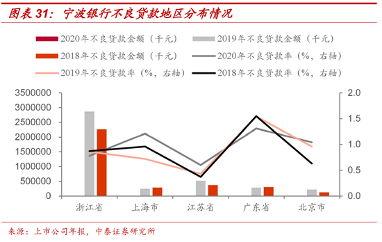 从不良贷款的地区分布来看,2020年末江苏、上海、北京和杭州的不良贷款率分别为1.04%、0.55%、0.68%、0.6%,分别较去年年末变化0.08、-0.45、-0.29、-0.38个百分点。