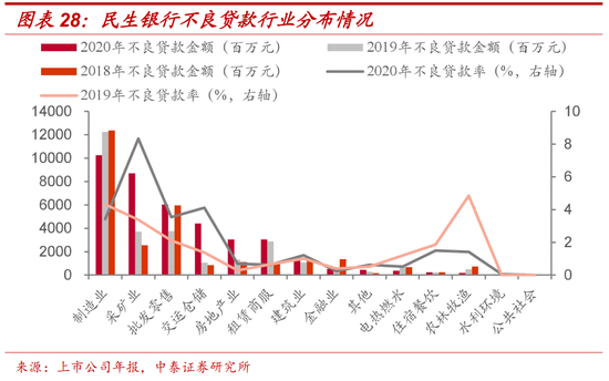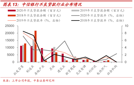 通过逐一梳理38家上市银行年报发现,东北地区、中西部地区和环渤海地区的不良贷款率相对较高,不良贷款率普遍较低的行业主要与公用事业相关。制造业、批发和零售业、建筑业是不良贷款分布较多的三个行业,租赁和商务服务业、房地产业以及采矿业的不良贷款也较高,而且大多数行业的不良贷款余额都呈一定的上升趋势。