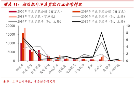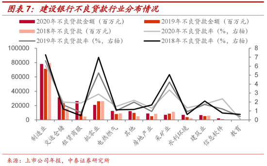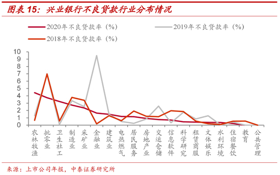 不良贷款率较低的行业有租赁和商务服务业(0.03%)、卫生和社会工作(0.09%)、采矿业(0.13%)。