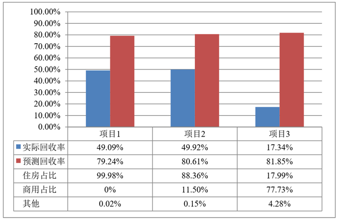 2、与基于正常市场情景下的第三方评估价值相比,个贷抵押类NPAS实际回收约为评估价值20%-60%,其中商业用房实际回收较评估价值折损约为居住用房的3倍