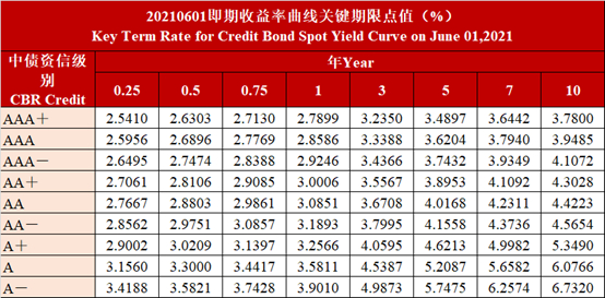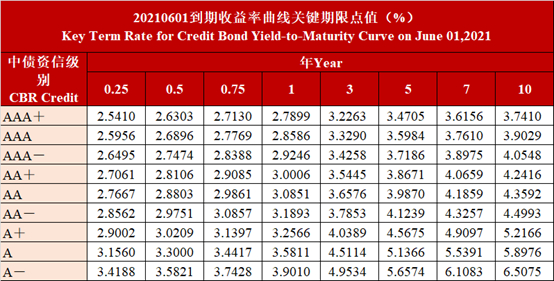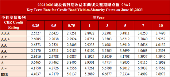 中债资信CBR非金融企业信用债曲线及估值日报-20210601