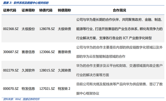 软件系统及数据中心:太极转债:公司与华为是长期的合作伙伴关系,由于部分业务上的相似性,两者得以共同聚焦政府、金融、制造、能源等行业,打造开放兼容的产业生态体系,孵化有竞争力的行业解决方案,支撑各行各业的ICT产业数字化转型。