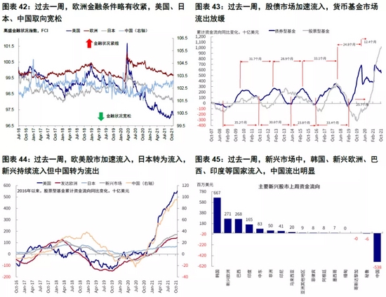 过去一周,股债市场加速流入,货币基金市场流出放缓。分市场看,美国股市加速流入,欧美股市加速流入,日本转为流入,新兴持续流入但中国转为流出。