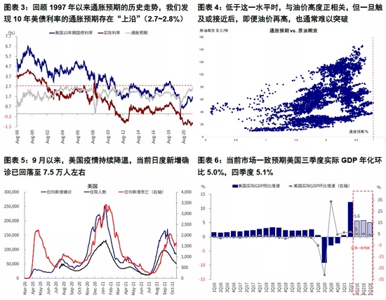 2)实际利率:相比之下,从近期公布的一系列数据来看,美国的增长和企业盈利仍有相当的韧性,四季度不排除在三季度疫情升级基础上出现环比加速,因此当前市场滞胀担忧也可能有些过度。这一背景下,叠加美联储11月初大概率宣布减量,不论从增长还是流动性角度(美联储持有持相当规模的TIPS债券,《实际利率持续为负之“谜”》),在此之前实际利率仍有上行动力,进而推动名义利率上行。