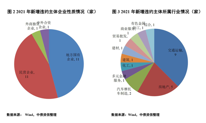 (一)2021年我国债券市场违约略有缓和,新增违约主体表现出明显的行业特征