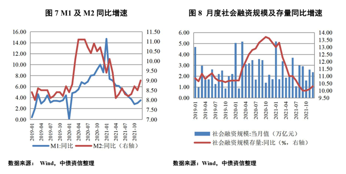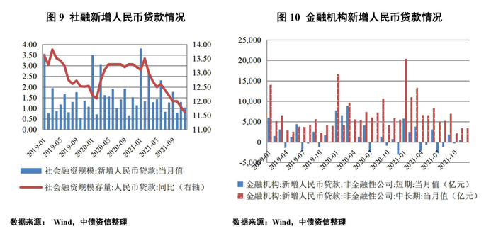 展望2022年,宏观经济方面,外部环境更趋严峻和复杂,疫情带来的不确定性仍将持续,我国经济发展面临需求收缩、供给冲击和预期转弱三重压力,然而,经济工作稳字当头、稳中求进,稳增长的责任将被层层落实,政策发力适当靠前,适度超前开展基础设施投资。因此,预计2022年国内宏观增长将整体保持稳定。融资环境方面,稳健的货币政策灵活适度,保持流动性合理充裕,考虑地产融资触底企稳,预计2022年社融规模相较2021年将边际好转,社融增速企稳微升。