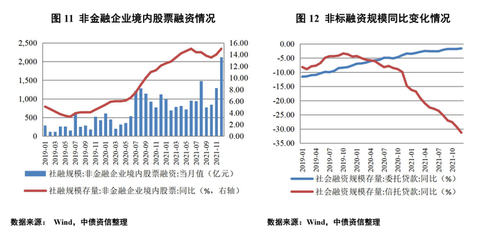 2021年以委托贷款、信托贷款为代表的社融非标融资仍处于持续收缩状态,其中受各地银保监局“两压一降”政策的影响,信托贷款的降幅有扩大趋势。