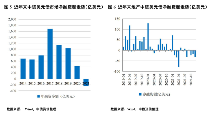 2021年,受销售降速、融资趋紧等因素影响,部分房地产企业流动性压力加大,作为中资美元债市场重要的发债主体(地产企业存量中资美元债占比超过20%),地产行业的信用风险也在中资美元债市场爆发,并引发市场剧烈波动。一方面,花样年美元债的超预期违约,引发美元债市场快速反应,地产美元债遭遇抛售,估值大面积下跌,该流动性冲击甚至波及高收益板块及整个中资美元债市场;另一方面,违约事件引发连锁反应,估值下跌叠加国际评级机构下调企业评级,地产美元债一级发行严重受阻,企业债券偿还压力进一步加大,引发一系列展期及违约事件,10月以来,包括花样年、新力控股、当代置业等在内的多家地产企业发生债务展期或违约。此外,此次美元债市场的风险也进一步传导至国内债券市场,10月以来地产境内债估值剧烈波动,境内地产债高收益成交显著提升,中资美元债市场与国内市场的联动增强,因此未来信用风险的监测也应内外债券市场结合来看。
