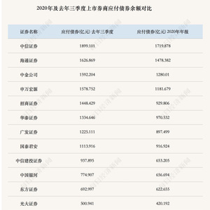 其中,在去年三季度末,已有中信证券、海通证券、中金公司、申万宏源、招商证券、华泰证券、广发证券、国泰君安等8家上市券商应付债券余额超过1000亿元,中信证券最高,达到1899.10亿元。而在2021年年初,只有中信证券、海通证券、中金公司、申万宏源4家券商应付债券余额超过1000亿元。