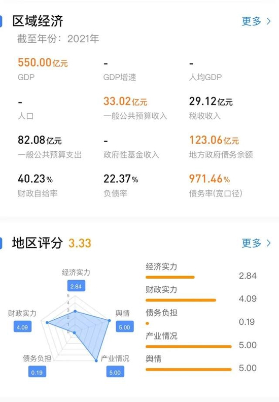 之前轰动一时的贵州独山县举债400亿,其2021年债务率也仅为90%。