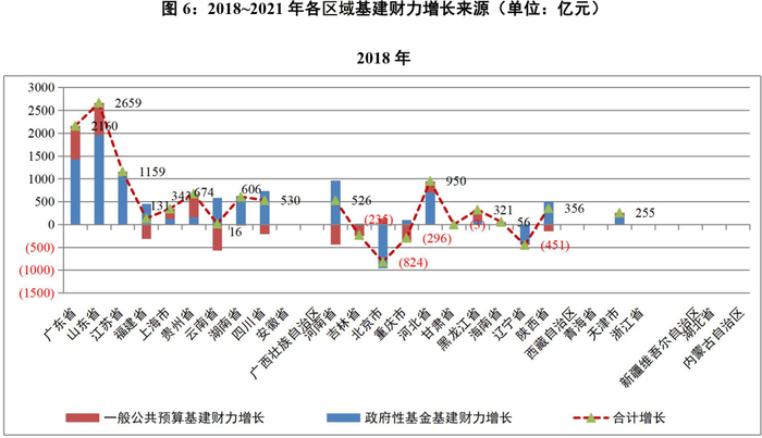 5、整体看,全国各区域现有基建财力能够较好保障当年资金周转需求,从而保障一定规模财力用于稳增长基建投资。结合区域基建财力潜在增长空间,分区域看,广东、上海、山东、浙江、福建、北京、安徽、西藏、吉林、海南等区域仍有较大规模财力空间可用于基建投资;河北、江苏、湖南、青海、陕西、河南、重庆、四川、甘肃、内蒙古、辽宁等区域有一定规模财力空间可用于基建投资;贵州、新疆、广西、黑龙江、云南、天津等区域可用于基建投资的财力空间相对有限。