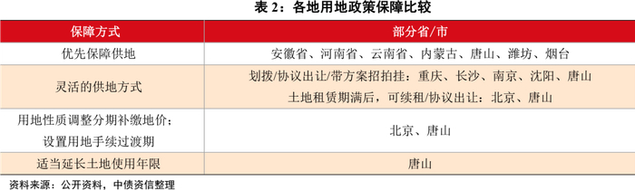 目前多地的政策提出以划拨方式、改变土地性质等方式保障城市更新用地。如上海提出,根据城市更新地块具体情况,供应土地采用招标、拍卖、挂牌、协议出让以及划拨等方式;安徽、内蒙古、云南等地提出有公共利益需要的,可按程序调整用地性质和用途。目前城投在土地方面享受政府的支持,如缴纳土地出让金之后部分地方政府还会以基建回款、政府补助等方式将土地出让金返还至企业,或者通过允许暂缓或分期补缴土地出让金等方式为城投企业用地减轻资金压力。预计未来城投在享受获得划拨土地、改变土地性质方面,仍具有优势,可显著降低项目投资成本(参考佛山市城市更新土地补缴要求,若将划拨工业用地转为居住用地或商服用地等,可视情况按照公开市场成交价进行折价补偿[2],大大降低其用地成本)。