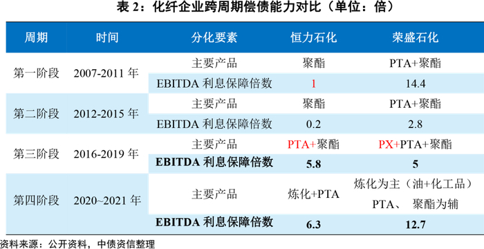 2)荣盛石化早期业务主要布局PTA和聚酯;2019年起,聚酯产业链上游一体化产品PX投产恰遇行业景气度高点,完善产业链的基础上也获得产PX的超额利润,盈利和偿债能力改善维持行业前列。